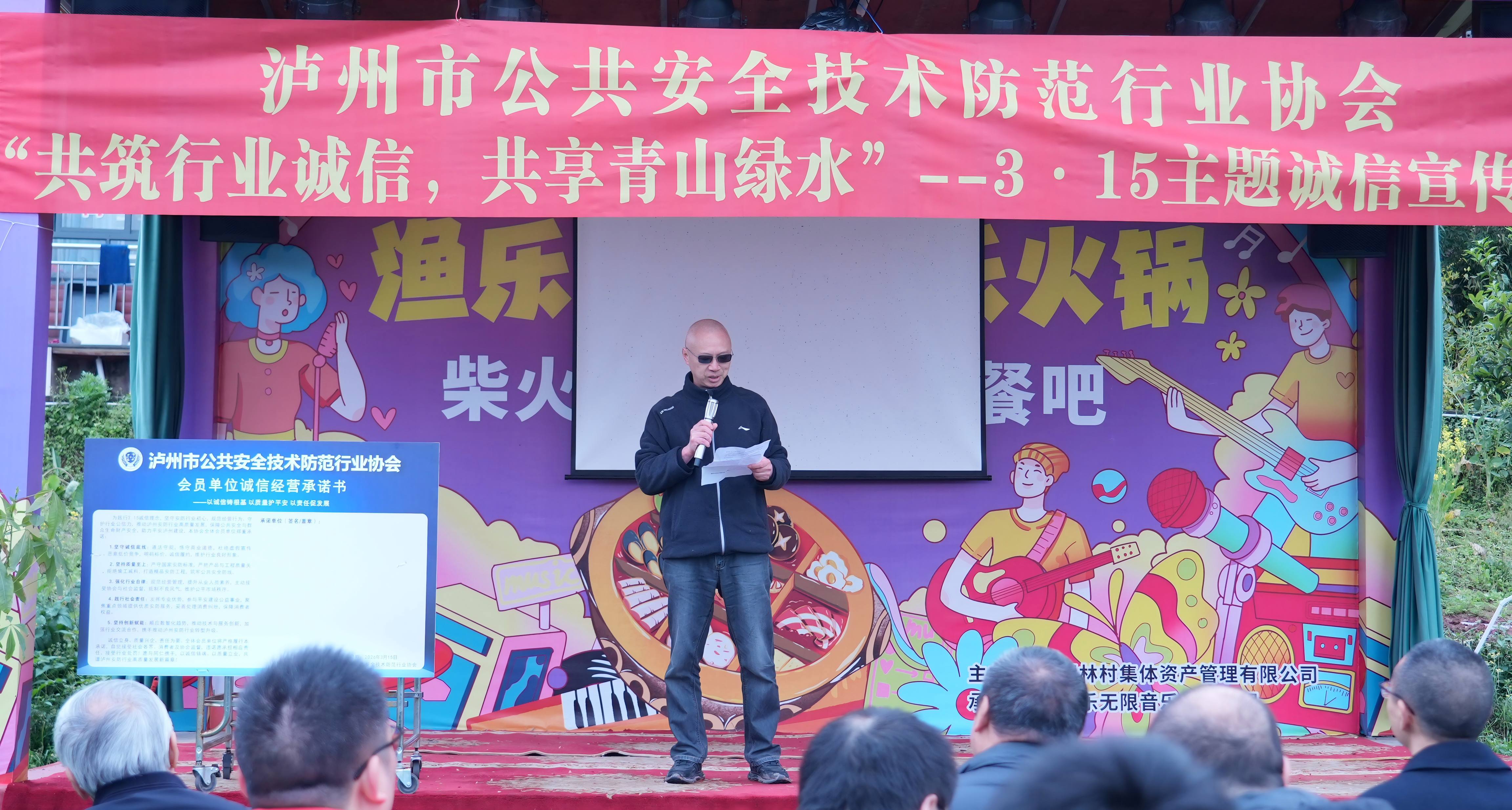 协会副会长吴晖在3・15“共筑诚信,共享青山绿水”主题宣贯会上,围绕诚信经营、行业自律、质量安全、服务规范等核心内容展开宣讲,号召全体会员单位坚守诚信底线、恪守行业准则、严把安防工程与产品质量关,以诚信立企、以品质兴业,共同维护泸州安防行业健康有序的市场环境,为平安泸州建设筑牢诚信基石。
