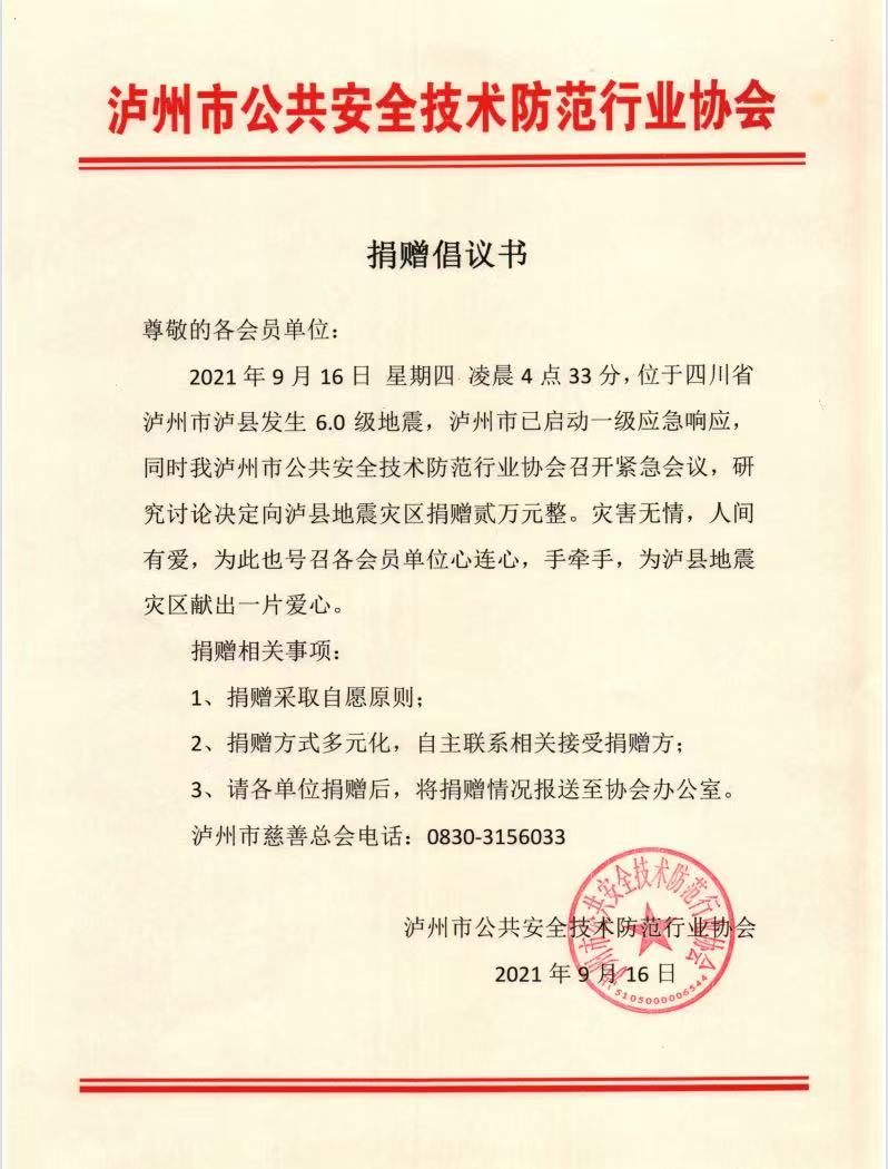 关于支援泸县地震灾区倡议书