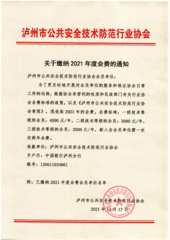 关于开展《泸州市公共安全技术防范行业协会成立十周年暨行业企业发展成果展》会议相关通知