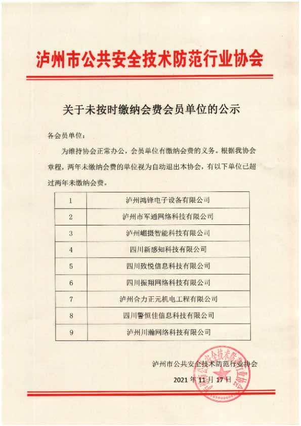 关于未按时缴纳会费会员单位的公示