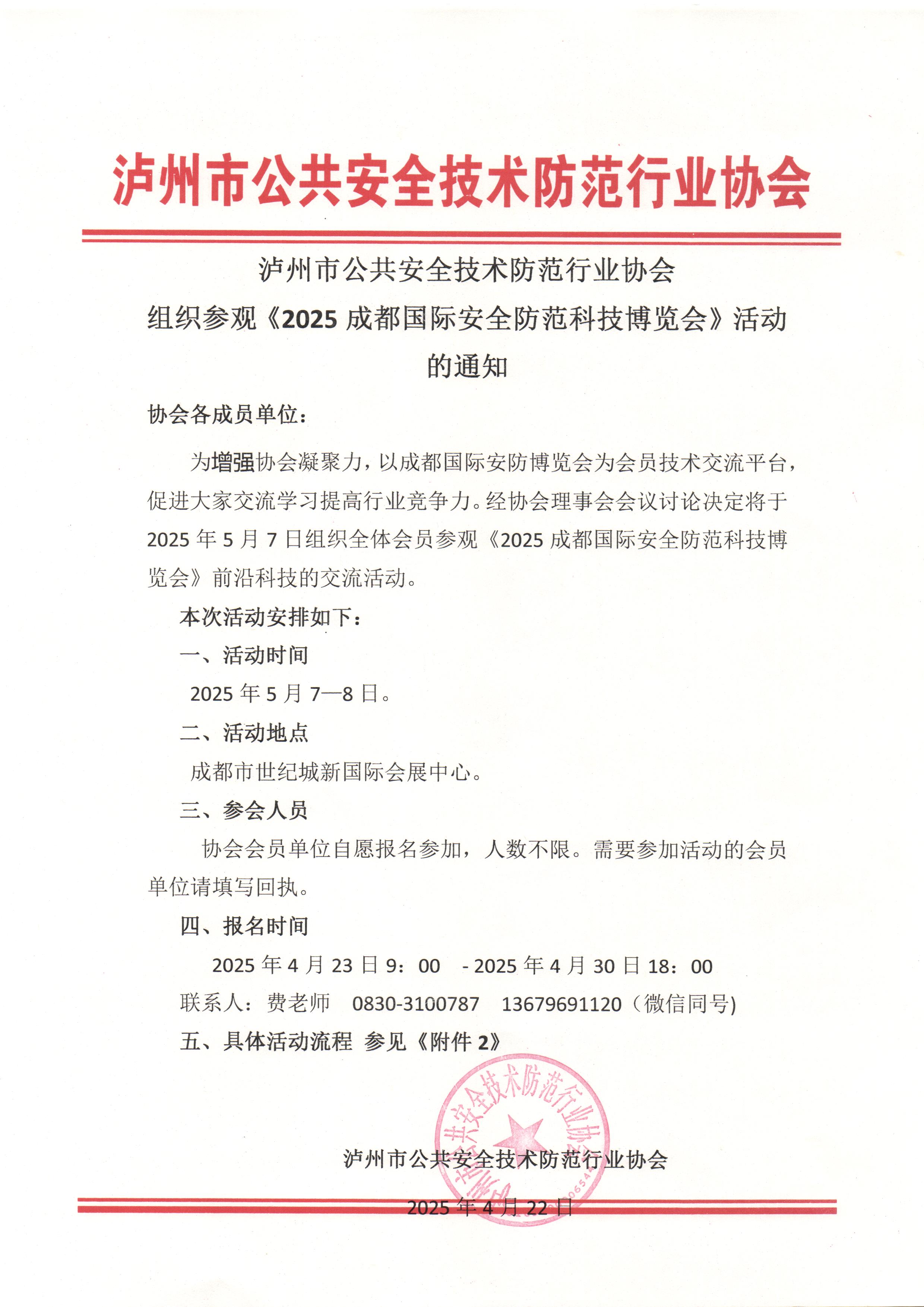 泸州市公共安全技术防范行业协会组织参观《2025成都国际安全防范科技博览会》活动的通知