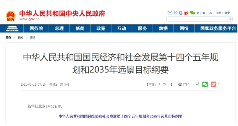 【CPS中安网 cps.com.cn】 新华社于12日全文播发《中华人民共和国国民经济和社会发展第十四个五年规划和2035年远景目标纲要》。十三届全国人大四次会议3月11日表决通过了关于国民经济和社会发展第十四个五年规划和2035年远景目标纲要的决议,决定批准这个规划纲要。
