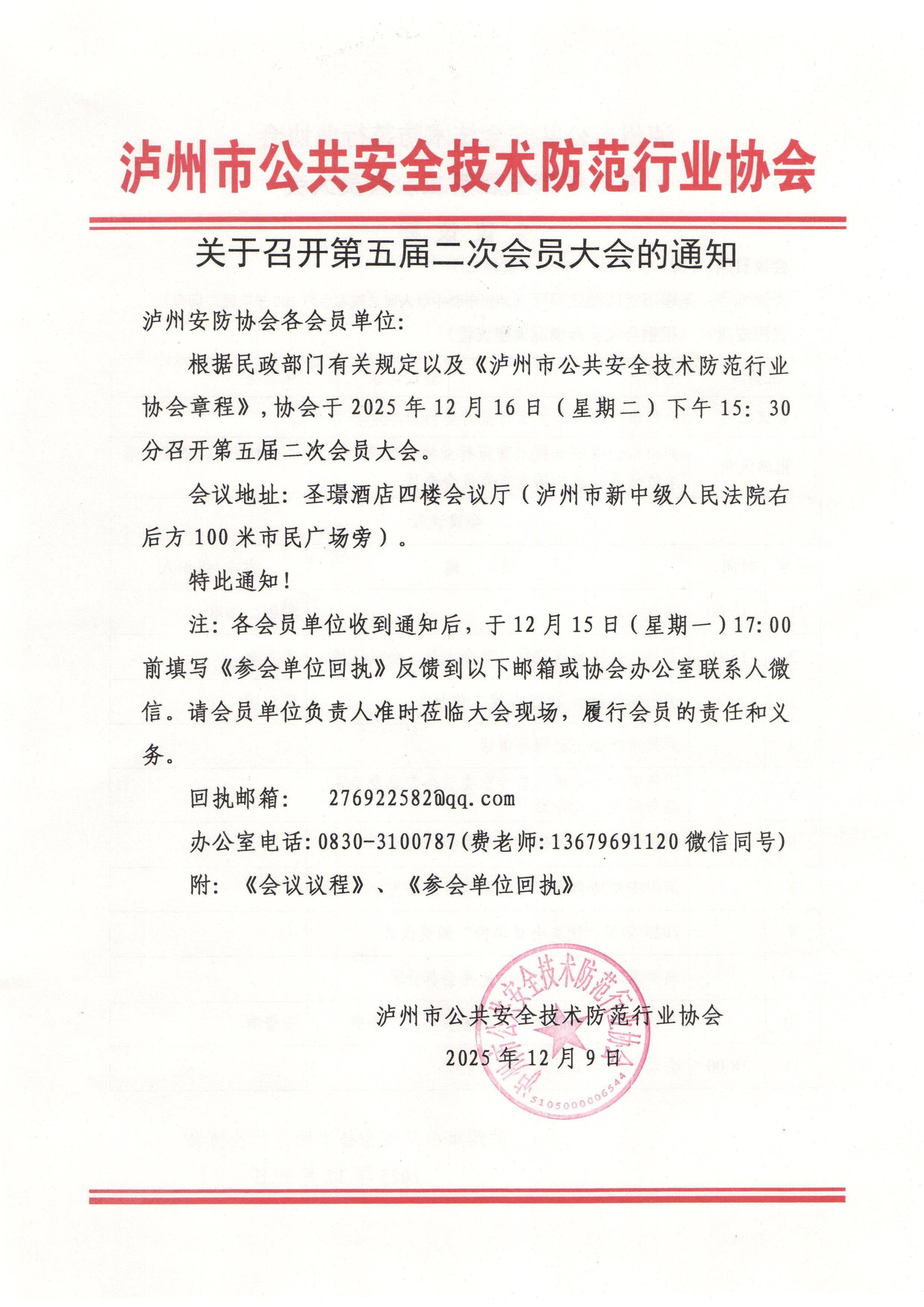 关于召开第五届二次会员大会的通知
